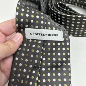 Geoffrey Beene Mens Neck Tie 100% Silk green polka dot good preowned condition