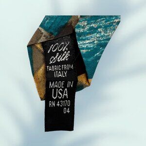 Father's Day Gift. New old stock vintage silk tie made in the USA with summer beach colors. 3.75" x 57". New in cellophane wrapper but no tags. From a Men's Tailor Store closeout in Palm Beach FL. Many more high-end Designer ties coming soon. Made in USA.