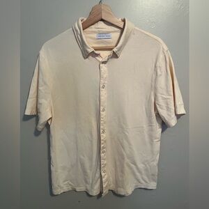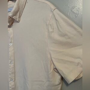 Stylish cream button down. Short sleeves for relaxed wear. Perfect for any casual occasion.