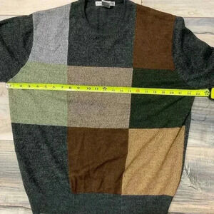 This Geoffrey Beene Sweater is used in good condition, soft and cozy for the cold weather. On the back of the sweater behind the tag it is slightly thinner on the material but not noticeable unless looking for it, not a hole.