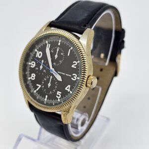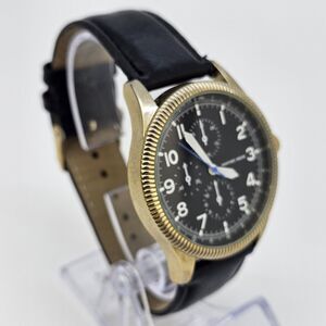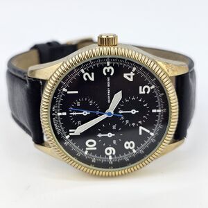 Geoffrey Beene Men's Watch 42MM Black Dial Black Leather Bands New Battery