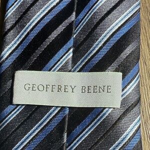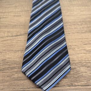 Stylish tie with navy and black stripes. Perfect for formal events.