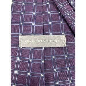 Geoffrey Beene Purple w/Blue Squares 100% Imported Silk Men’s Tie Made In USA