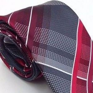 Geoffrey Beene Red Gray Plaid Neck Tie