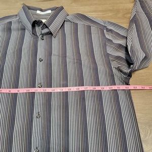 Geoffrey Beene Shirt Mens Medium Gray Striped Button Up Long Sleeve Casual