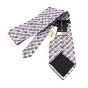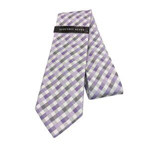 Geoffrey Beene Silk Blend Tie Mens 59” Lavender Silver Gingham Plaid Classic New