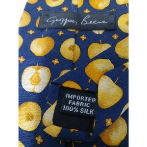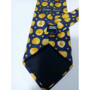 Geoffrey Beene Silk Necktie Dark Blue with Yellow Apples