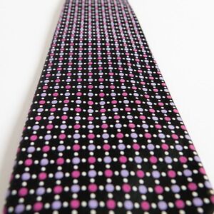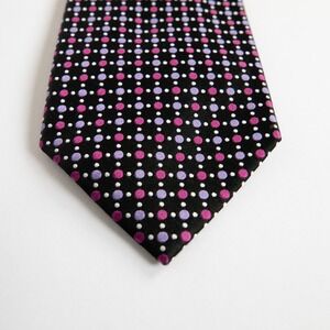 Geoffrey Beene Silk Tie Black Pink Purple Polka Dot Pattern 100% Silk