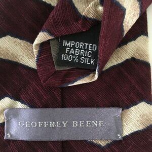 Geoffrey Beene 100% imported silk necktie. Nice design, maroon and cream. Standard Size. Great Shape, Gently Used. I ship quickly from my smoke free home. Made in the USA