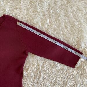 Fine knit sweater made of 70% silk and 30% cotton. Crewneck with 3/4 length sleeves. This item is in excellent preowned condition. Please see photos for details and measurements.