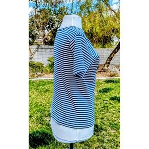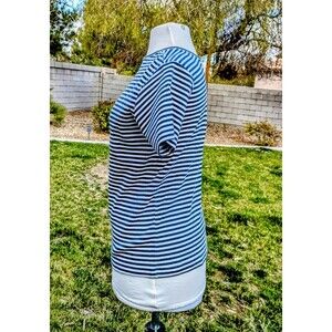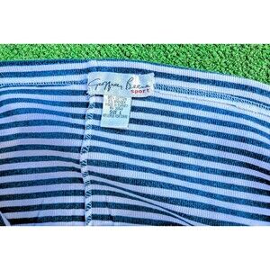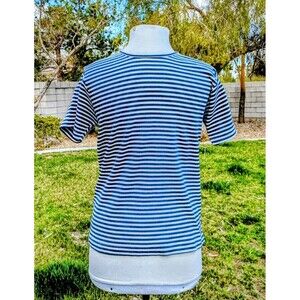 Geoffrey Beene Sport Womens Lg Striped S/S Pullover Stretch Ribbed Shirt Top EUC