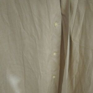 Classic tan dress shirt. Long sleeves. Button-up front. Perfect for formal occasions