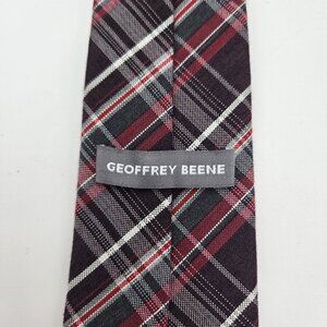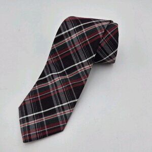 Geoffrey Beene Tie Scottish Tartan Pattern Plaid Red Brown White Black 59 X 3 In