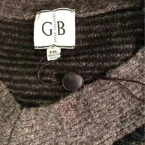 Geoffrey Beene XXL Wool Blend Gray and Black Striped Sweater V Neck.