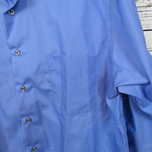 Geoffrey Beene bright medium blue button down long-sleeved men's dress oxford. Quick dry/wrinkle free. Size: 16-1/2", 32/33. 55% cotton/45% polyester.