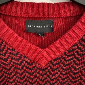 Geoffrey Beene Men’s V Neck Long Sleeve Knit Sweater Red and Black size S