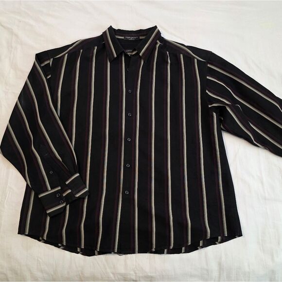 Geoffrey Beene Black Shirt with Burgundy and White Stripes