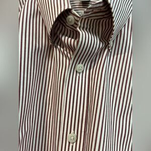 Geoffrey Beene red/white stripe button up shirt size 16 1/2 34/35
