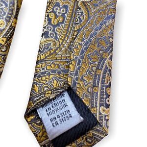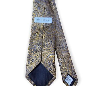 Geoffrey Beene handmade 100% silk tie In Gold and black paisley