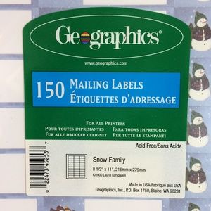 New, Factory Sealed Geographics 150 Count Holiday Mailing Self Adhesive Acid Free Labels "Snow Family"