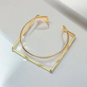 🆕️Geometric 14K Gold Plated Iron Round & Square Bangle Bracelet ✨