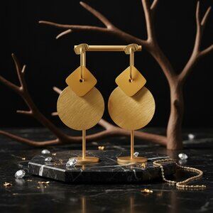 These earrings, meticulously designed with exceptional detail, are a harmonious blend of lustrous gold-plated stainless steel and a matte finish, exuding an air of elegance and sophistication. Their unique design makes them a versatile accessory, perfectly suited to enhance any ensemble, whether for formal events or casual outings.
