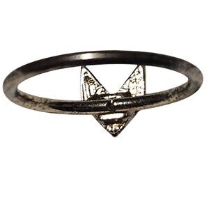 This ring combines a minimalist design with a geometric arrowhead accent, offering a stylish addition to any jewelry collection. Its simple yet chic appearance makes it a versatile accessory for various looks.