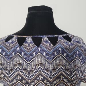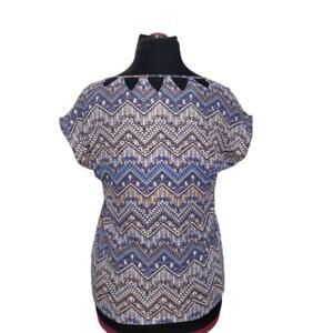 Skies Are Blue Tribal Aztec Geometric Zig Zag Design Short Sleeve Blouse