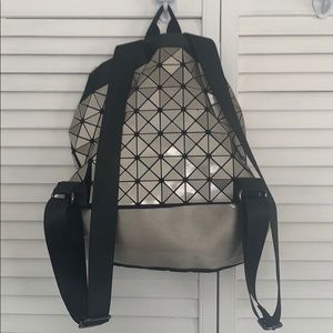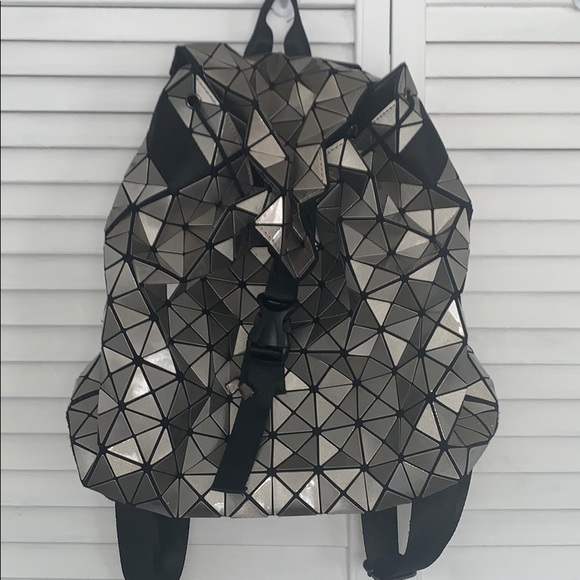 Good condition! Has a little tear at bottom of right strap and a few scratches on the very bottom.