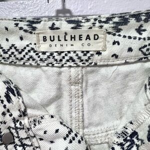 These jean shorts boast a bold black and white geometric pattern, perfect for adding a dynamic touch to your summer style.