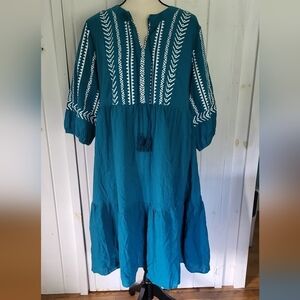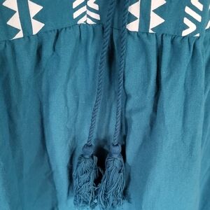 Geometric Bohemian Print Knot Neck Tassel Trim Dress