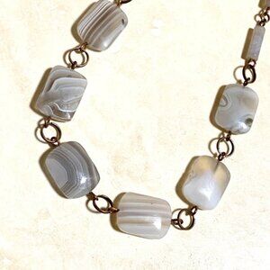 Geometric Botswana Agate Necklace, Rustic Genuine Gemstone Copper Link Necklace