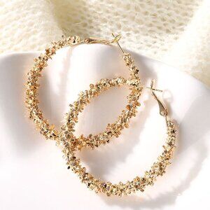 "Geometric Circle Round Gold Plated Hoop Earrings for Women, UNVN12435