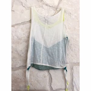 •Neon Yellow, White, and Teal color blocked Tank •Delicate gold details running vertically across front •Adjustable ties on bottom sides Tags: free people, Boho, flower child, PacSun, lulus, anthropologie, embroidery, music festival, Coachella, bonnaroo, ACL, free press, Aztec, Indian, ethnic, Mayan, Native American, color block, neon, bright, metallic, gold, turquoise, bow, tie