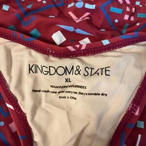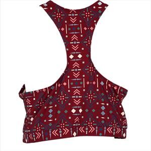 Geometric Cut-Out Bandeau Tankini in Burgundy with Multi Color Pattern Size XL