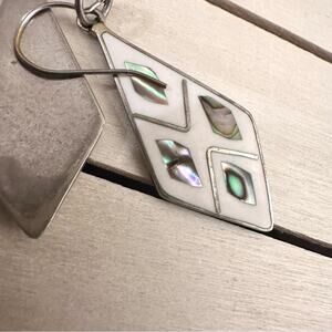 Geometric Diamond Shaped Oil Slick Mother of Pearl Pierced Dangle Earrings