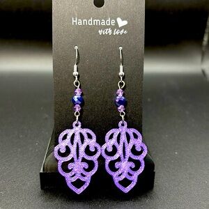 These pieces are made to order and printed a pair at a time in our 3D printers. A nozzle dispenses PLA Filament at a high temperature to create a 3D print layer by layer. The print is created from the bottom up and details of this process can be seen in the finished product. If you look closely at our earrings, you may see lines that are indicative of the path the nozzle traveled to create the piece. Because of this, 3D Prints are NOT to be compared to mass or commercially produced plastic pieces. Each one is unique, susceptible to variation, and shows distinct signs of its creation process that we believe adds character and sacredness . Hope you enjoy my homemade jewelry.