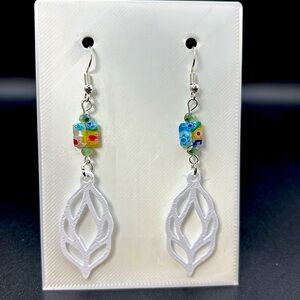 These 3-D Printed Earrings will make the perfect addition to any collection. Printed with quality 3-D printed plastic with glass beads this print will reflect light and create textured shadows to great effect.