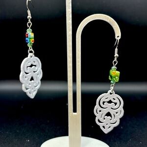 These 3-D Printed Earrings will make the perfect addition to any collection. Printed with quality 3-D printed plastic with glass beads this print will reflect light and create textured shadows to great effect.