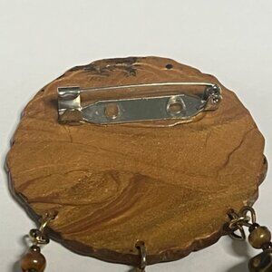 Geometric Embossed Circular Leather Beaded Stones Dangle Hat Vest Pin Brooch 3"