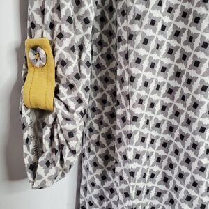 Geometric Floral Rolled Long Sleeve T Shirt S Gray Yellow Matilda Jane