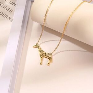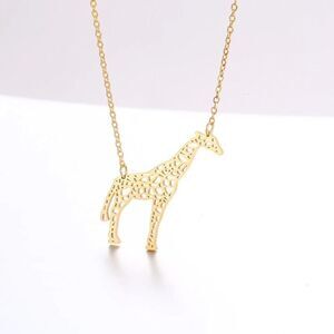 This necklace features a gorgeous giraffe pendant on the end of a 17-inch chain with a 2-inch extender. The giraffe is constructed from a series of geometric shapes. It gives it a shimmering 3D effect.
