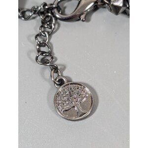 Enhance your style with this stunning geometric gray metallic cluster charm statement bracelet. Its unique design and versatile color make it perfect for any occasion or outfit.