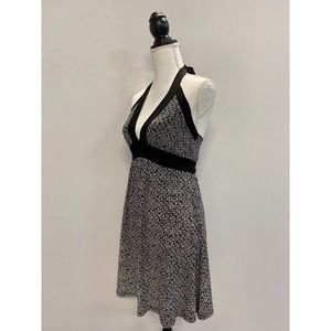 Geometric Halter V-Neck Tie Back Club Cocktail Dress Small