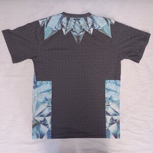 A t-shirt in a light blue, icy, geometric pattern. In good condition.