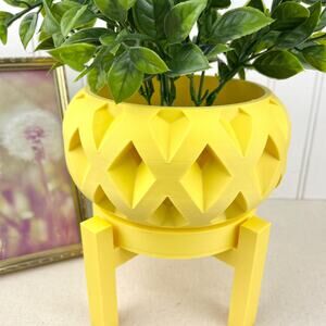 Make a bold statement with this 3D printed planter on a matching stand. Featuring striking diamond-cut pattern that adds depth and personality to any room. Perched on a matching stand for an elevated modern look, it’s perfect for succulents, small houseplants, or as a standalone design piece.