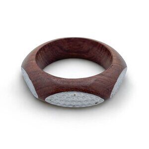 Step into unique style with our Geometric Inlay Wood Bangle with Textured Accents (BH0274). This distinctive bracelet features a rich wooden base complemented by striking geometric inlays with a unique textured finish, perfect for adding an artistic touch to your ensemble.