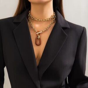 Chunky Choker Necklace Layered Chain Punk Thick Gold Vintage Style Geometric