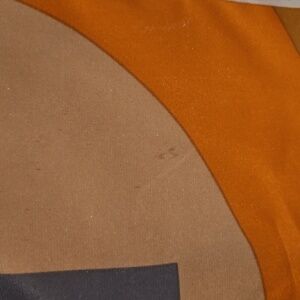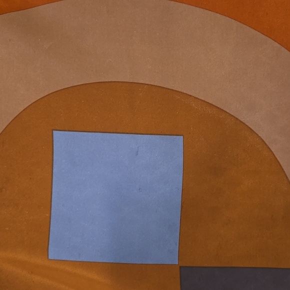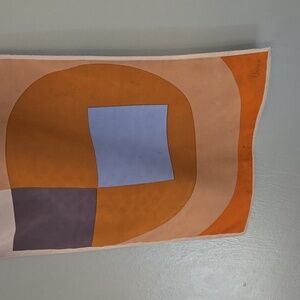 Grandma's closet vintage flair! Blue, brown, navy, camel orange colored scarf with a neat geometric pattern.