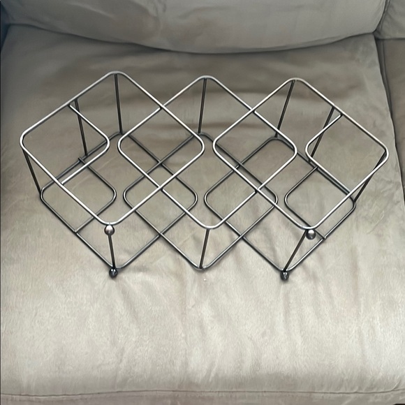 Stylish geometric metal wine rack. Perfect for modern decor. Dark Copper/oil-rubbed bronze color metal.